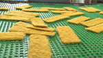 さらに、工場を進むと揚げたての「カープかつ」が大量に運ばれていきます!!