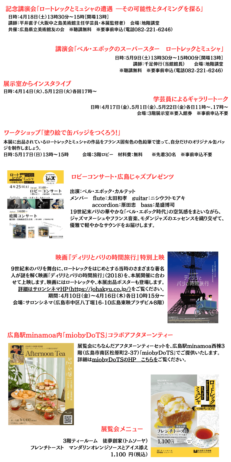 | 展覧会の見どころ | 1.ロートレックの全ポスター31 点を一堂に紹介