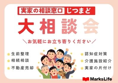 ご自身の老後のこと、実家のこと、親のこと。気になってはいるけれど、何から手を付けていいか分からない。そんな声に応えるのが「じつまど」です。認知症対策・生前整理・相続相談・不動産売却・介護施設紹介・実家の片づけなど、ワンストップで相談できる窓口となります。プロと一緒に、悩みを整理し、解決の一歩を踏み出せます。今回のイベントでは無料相談会を開催いたします。