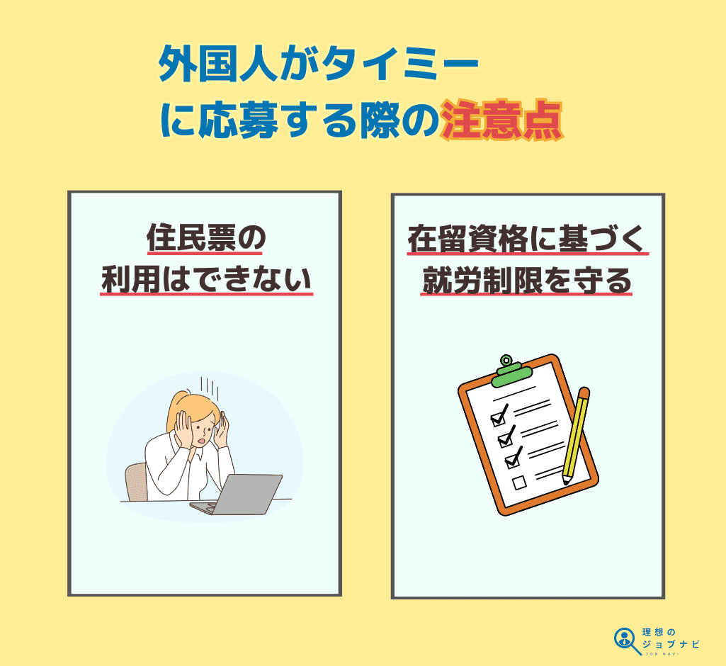 However, if you prepare the necessary documents and follow the precautions when applying for a job, you can use“Timee”even if you are a foreigner.