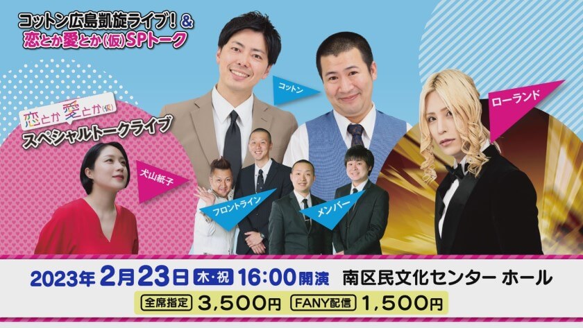 2022/12/22 【ローランドが広島に降臨!!】広島ホームテレビ『コイカリ』がホスト界帝王の恋愛観をフカボリ!&コットン広島凱旋ライブが決定!