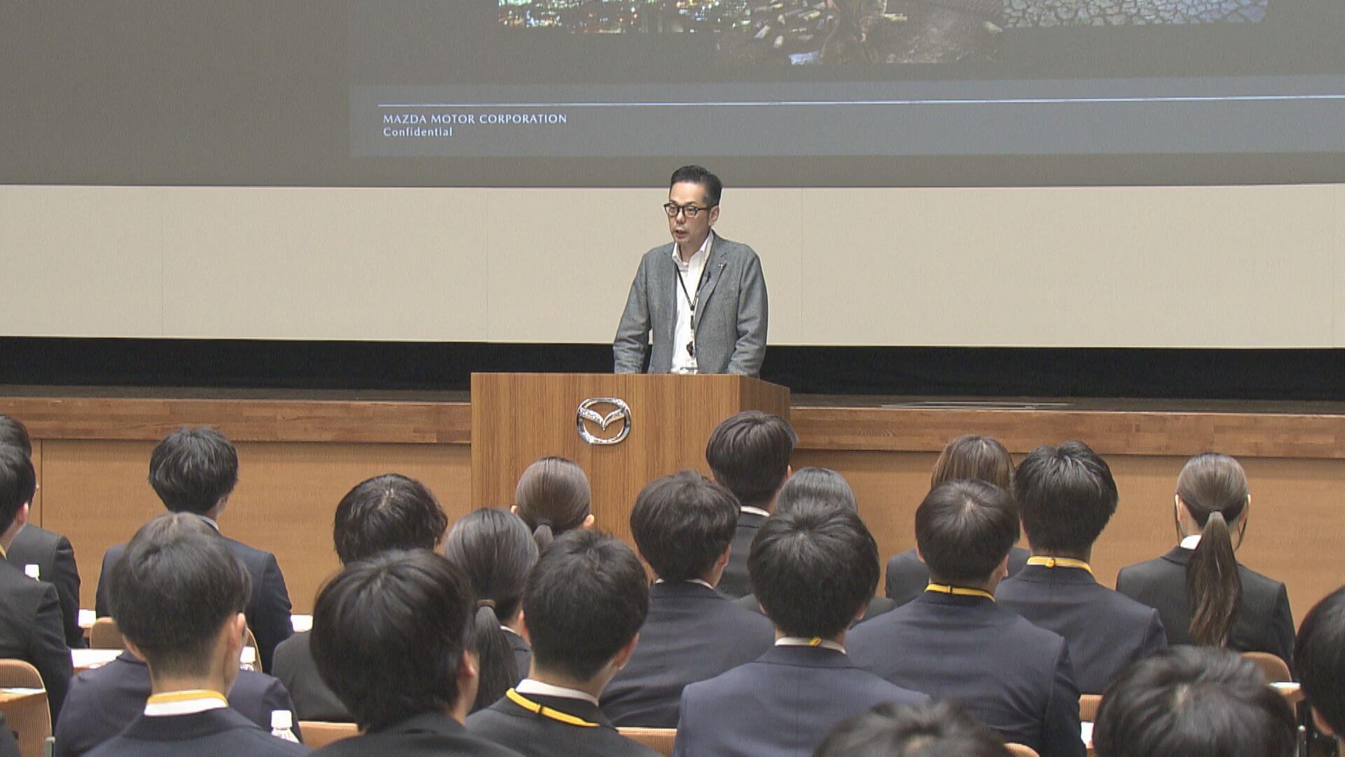 内定式では西川人事本部長から「『広島と言えばマツダ』と言ってもらえるよう一緒に頑張りましょう」とメッセージが贈られ、内定予定の学生らは厳しい自動車業界を共に乗り越える決意を新たにしていました。