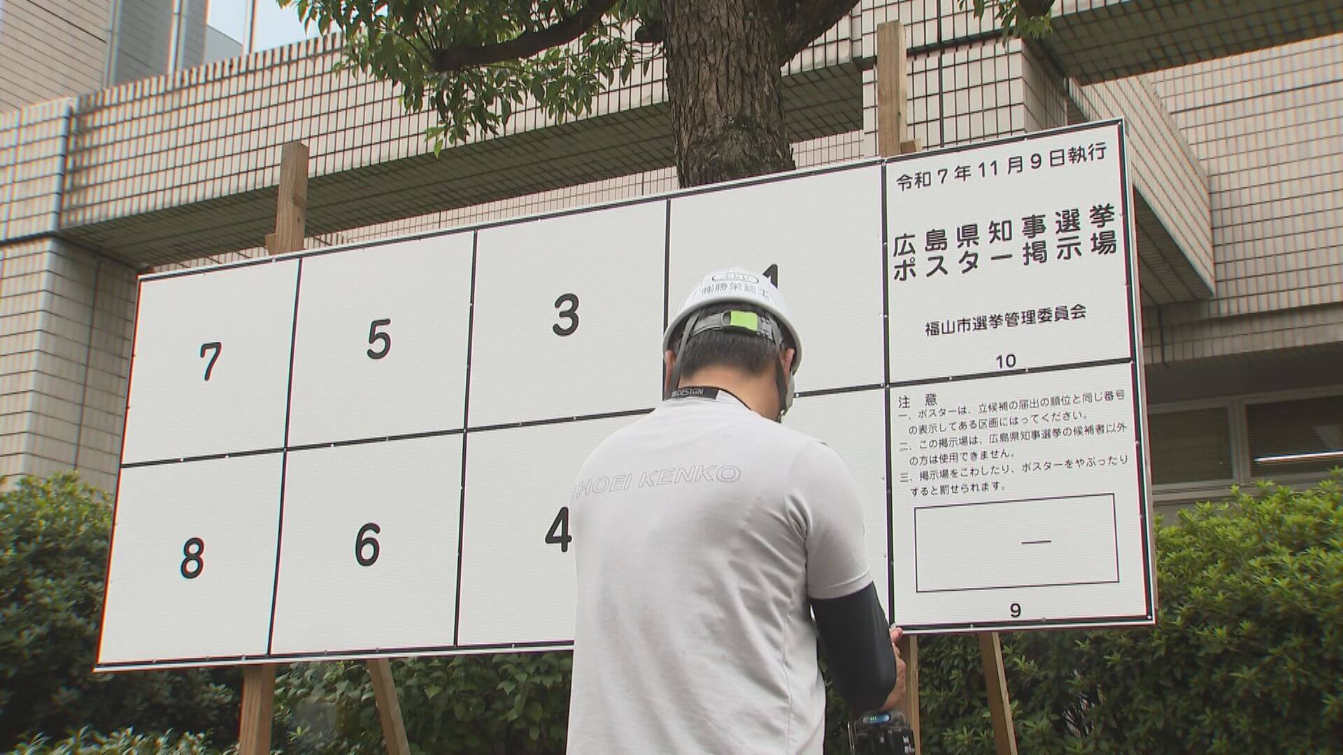 23日に告示される県知事選挙に向けて、立候補者のポスターを貼る掲示板の設置が始まりました。
