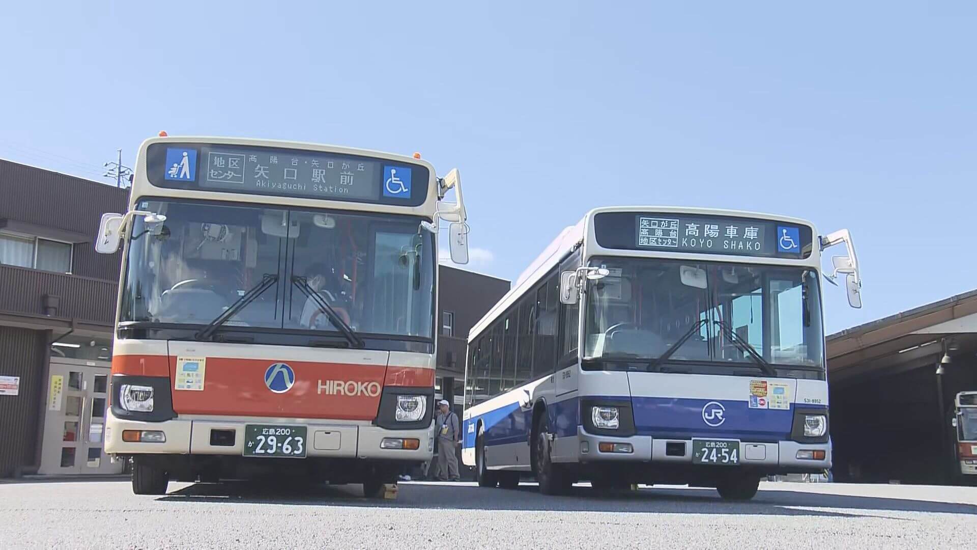 6日、運行が始まったのは安佐北区の高陽地区を走る広島交通とJRバス中国の路線バス。