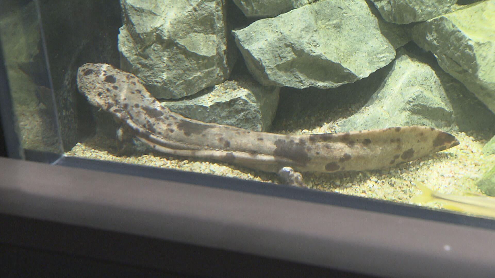 太田朱香記者「新たな水槽に、いまオオサンショウウオが引っ越してきました」