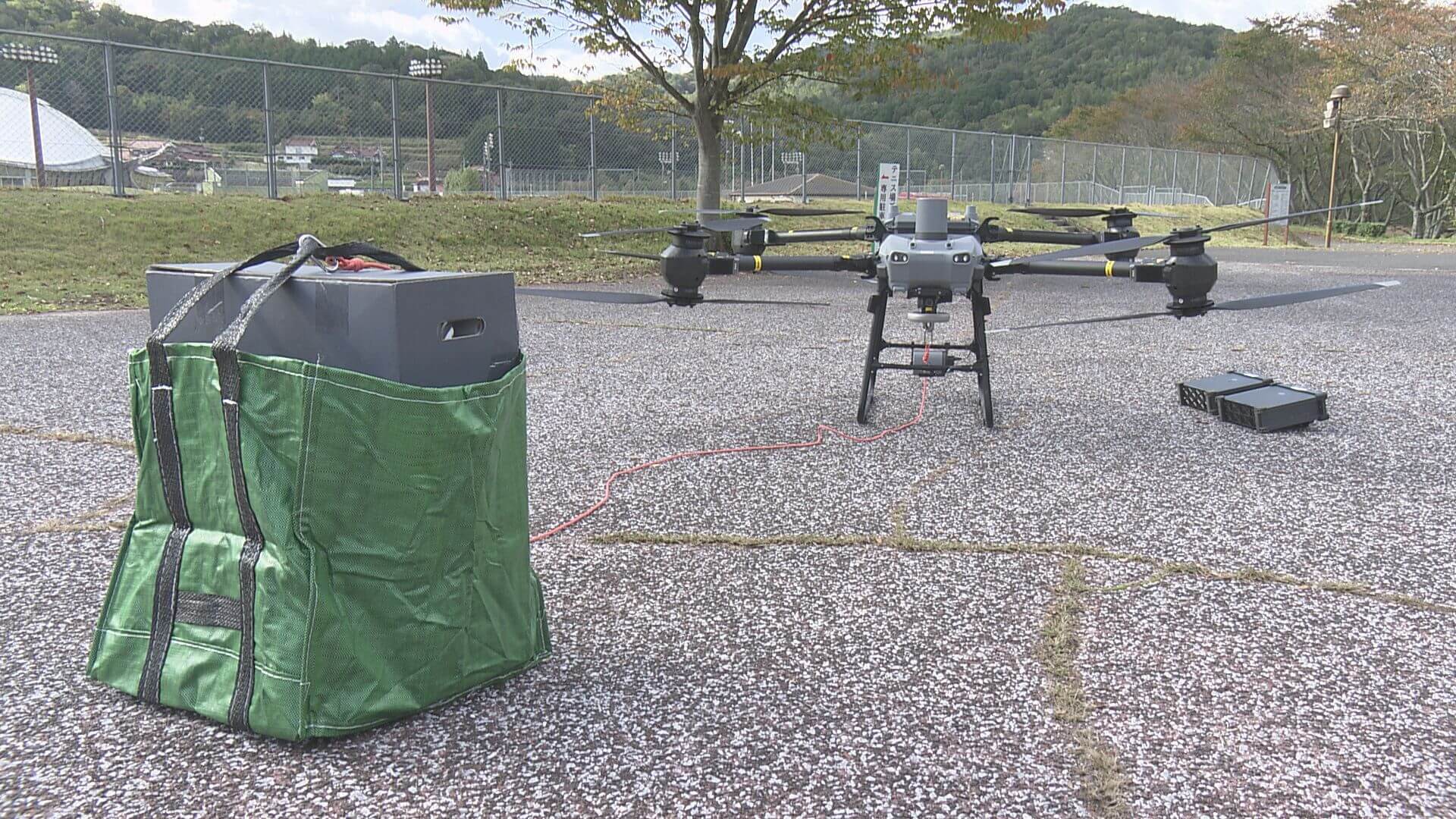 災害が起きたときに問題になるのが道路寸断による孤立集落の発生です。県と三原市は「空から支援」するためドローンなどでの物資輸送訓練を行いました。