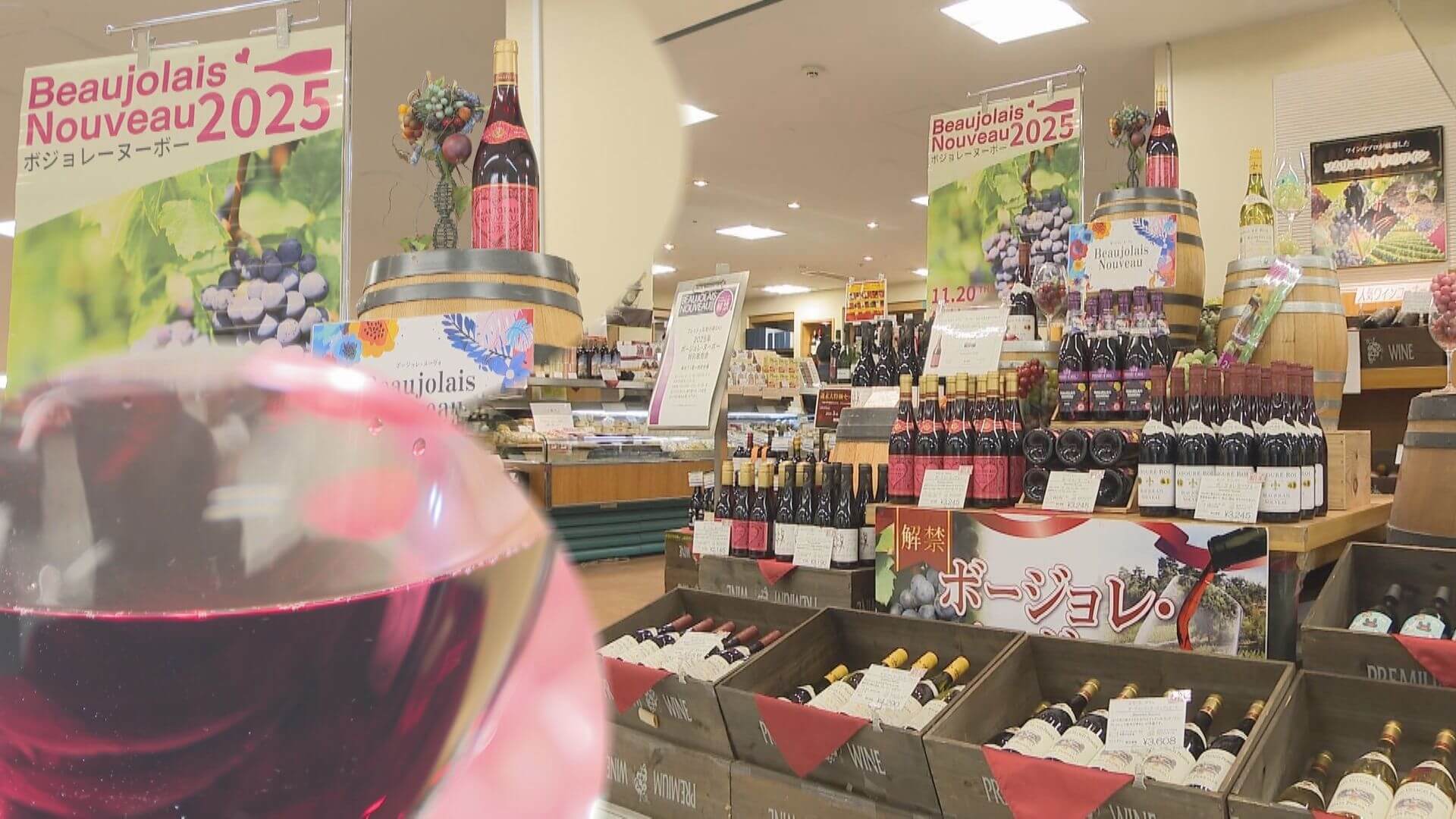 ボージョレ・ヌーボーの販売が解禁され中区のデパートにも商品が並びました。