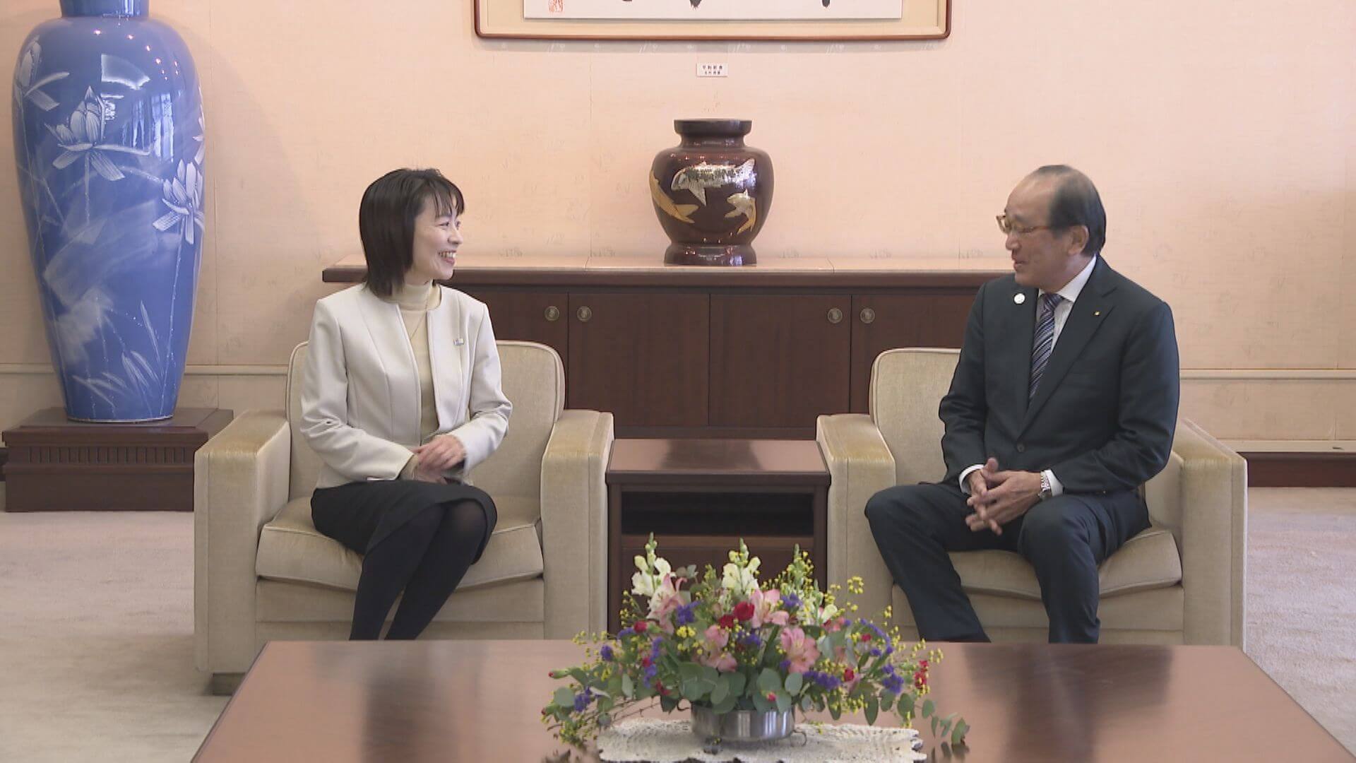 広島市の松井市長を訪問した横田知事は、子育て支援を中心とした人口減少対策などについて連携していきたいと話しました。