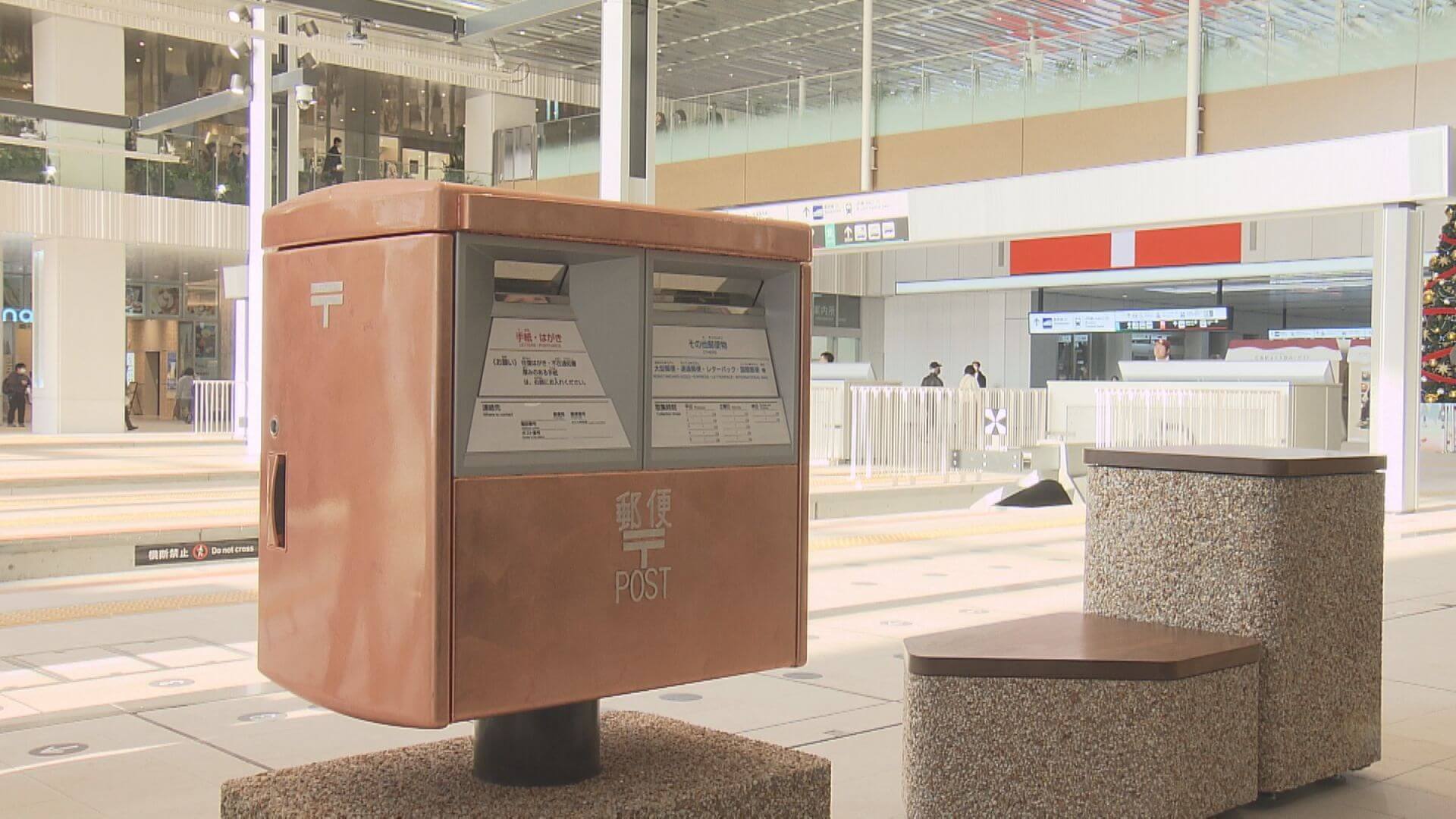 再整備に伴い郵便ポストが撤去されていた広島駅南口に、新たに銅箔でラッピングされたポストが設置されました。