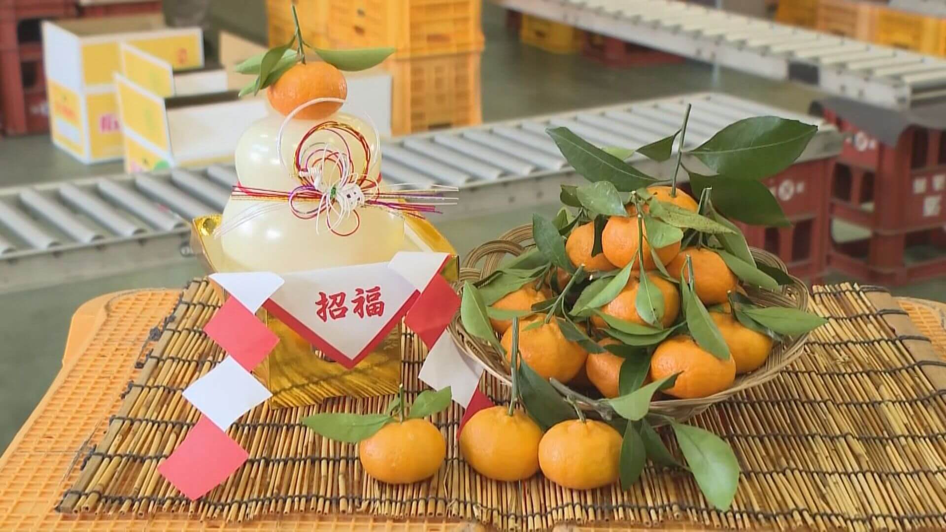 呉市の下蒲刈町でお正月の縁起物として欠かせない「葉つきミカン」が出荷されました。