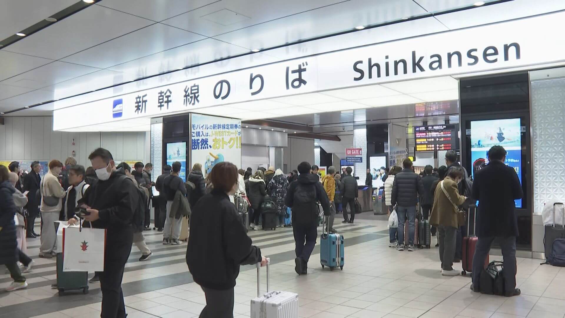 永松雄輔記者「新幹線のりばの改札付近です。運転再開を待つ人でごった返しています」