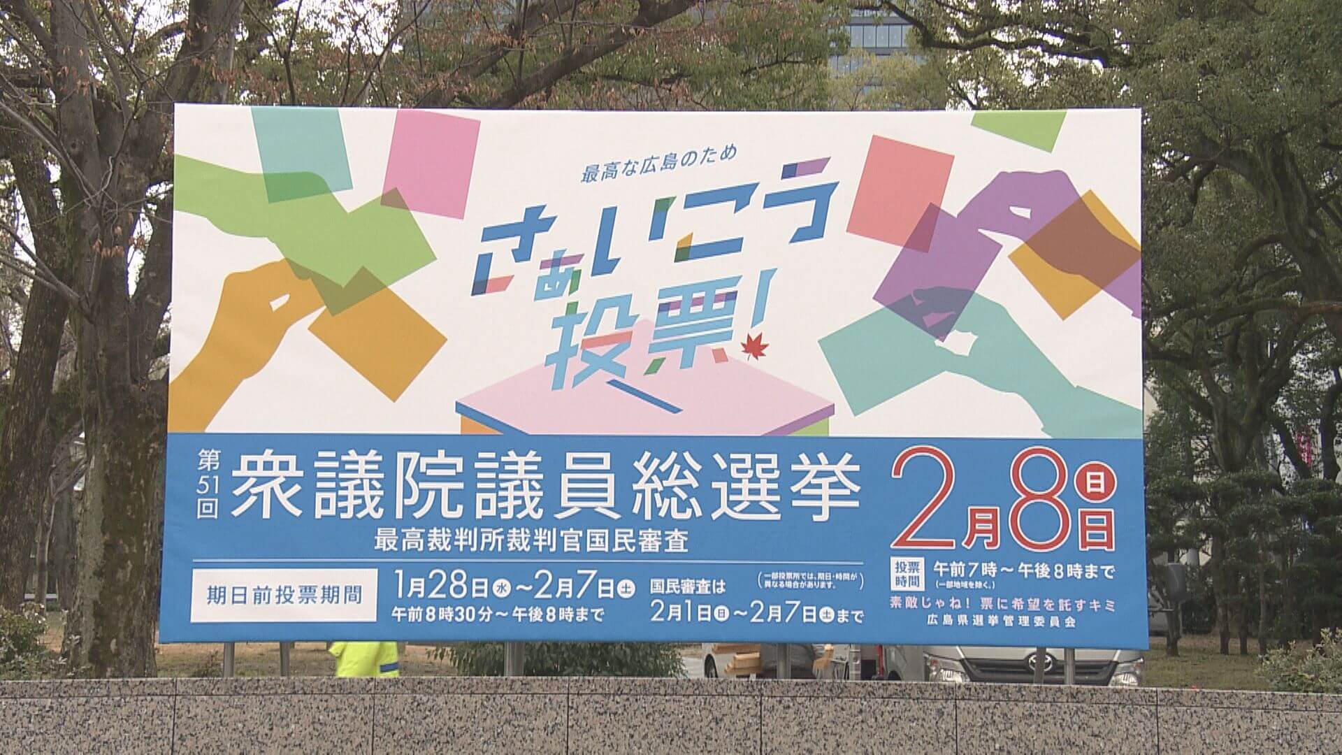 準備期間が短かったことから今回は看板にキャラクターなどは起用せず、中央に「さぁいこう投票」というメッセージを配置するシンプルなデザインにしたということです。