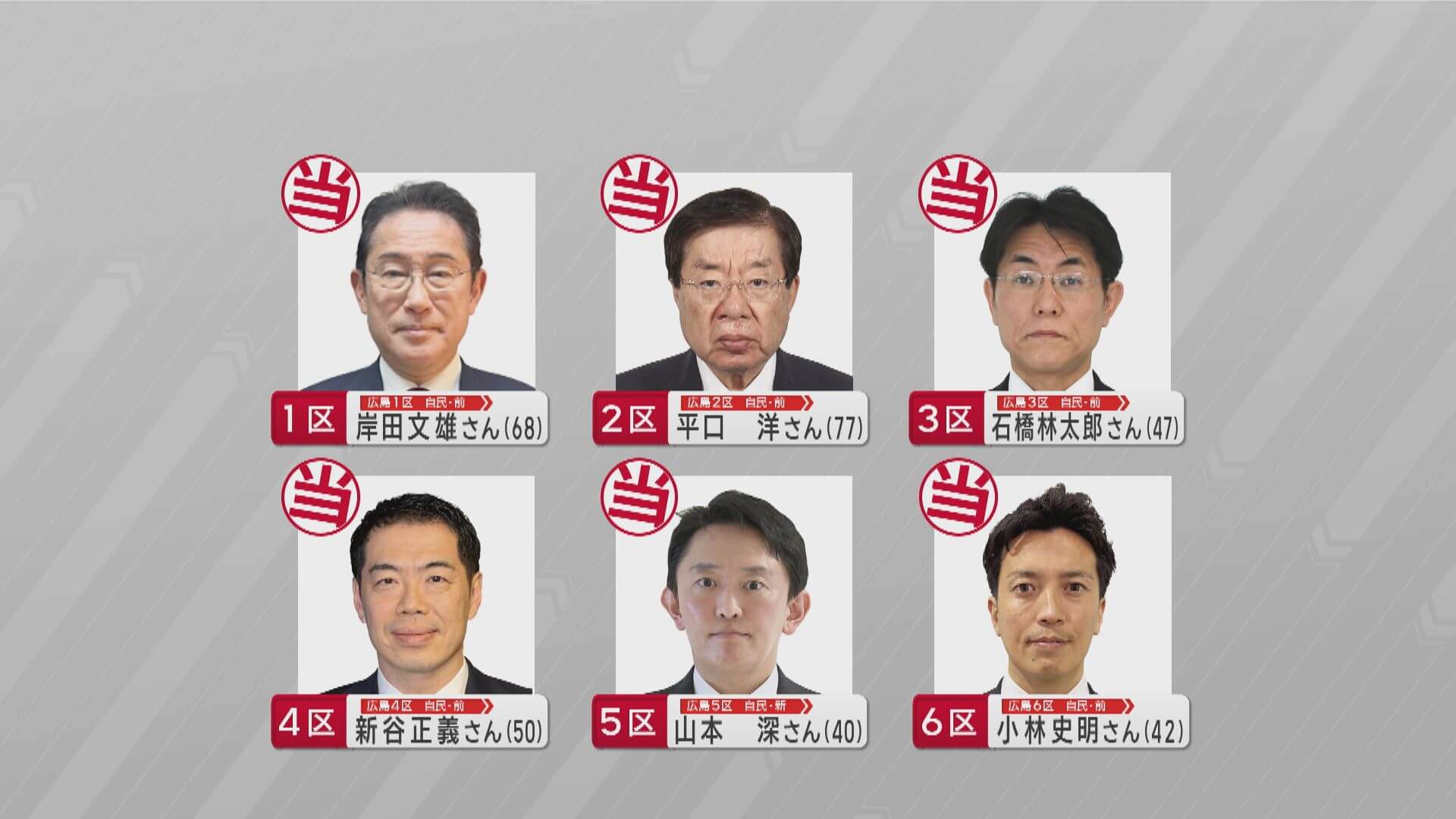 広島県内では、6つの選挙区すべてで自民党が議席を獲得しました。