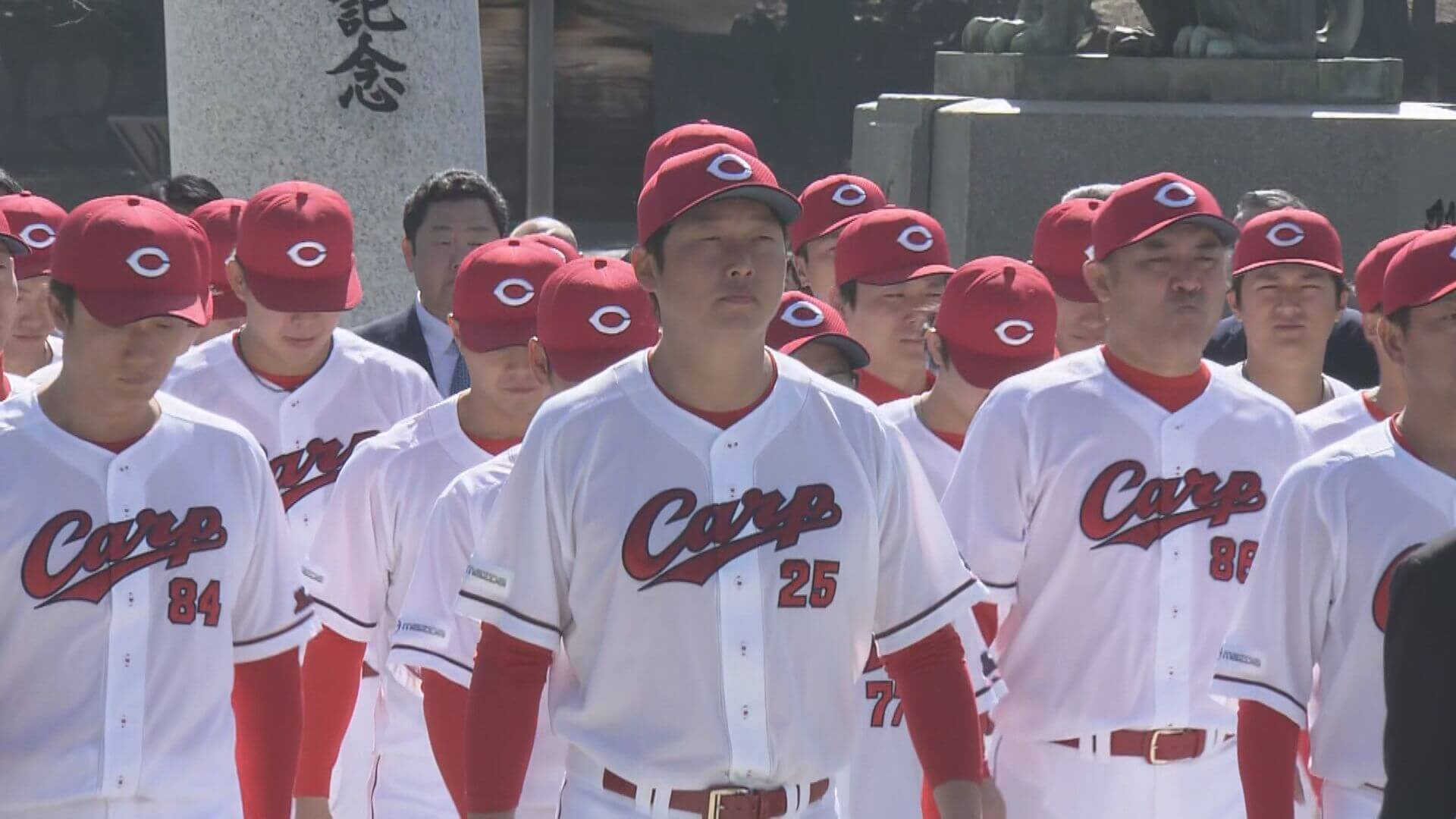 24日、広島市中区の広島護国神社に、新井貴浩監督をはじめ、初めて開幕投手を務める床田寛樹投手など、選手・スタッフあわせて41人が参拝しました。