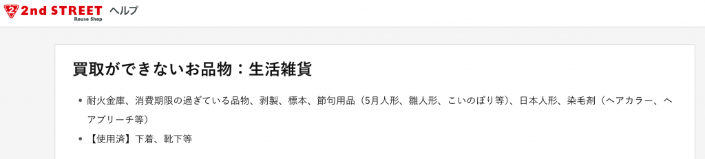 公式サイトの「買取できないお品物」のページにもその旨が記載されています。