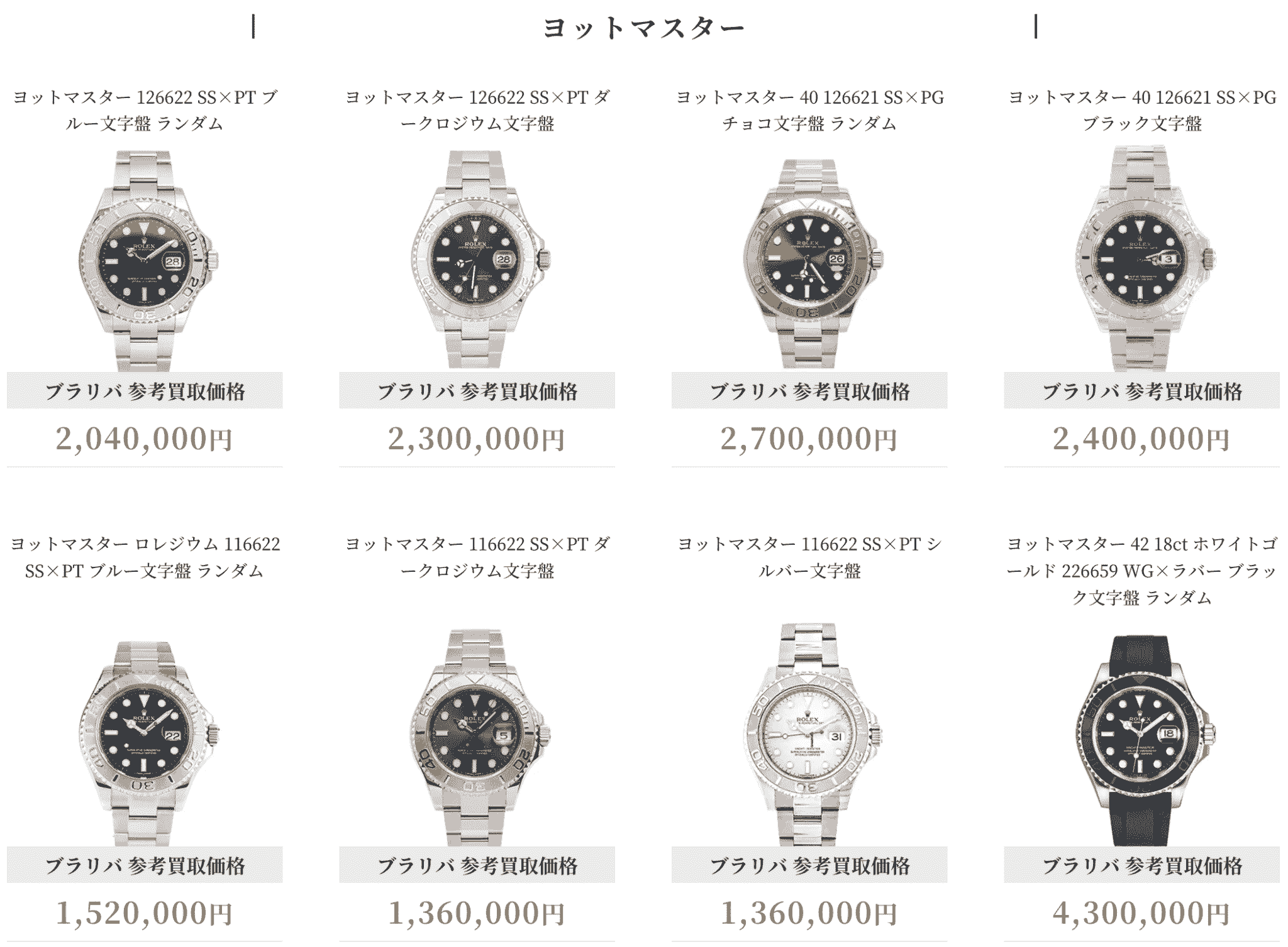 ロレックスの買取は、以下のとおりです。